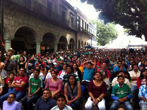 ~~Oaxaca.- Cientos de oaxaqueños se han concentrado en el zócalo capitalino para disfrutar el Partido México-Holanda.