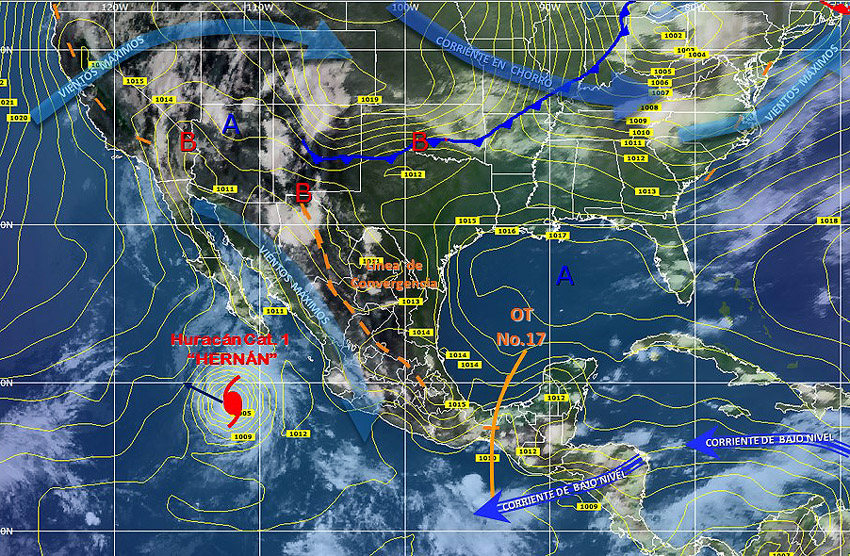 ~~México.- Huracán HERNAN y las Ondas tropicales no. 17 y 18 provocarán lluvia en el país