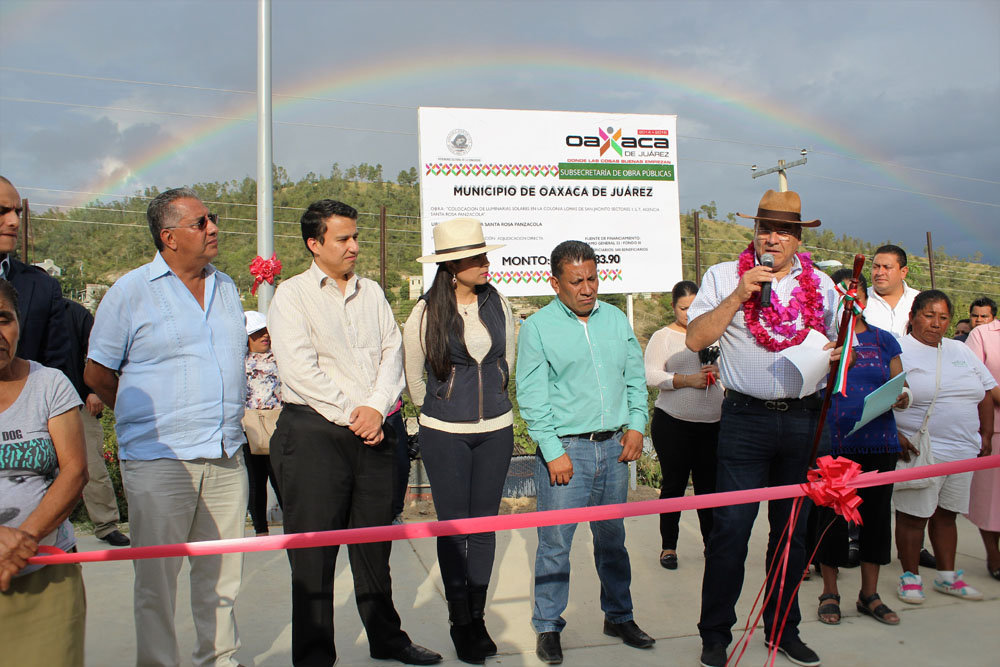 Oaxaca.- En respuesta a la demanda de familias de la colonia Lomas de San Jacinto, perteneciente a la agencia municipal de Santa Rosa Panzacola, en el sentido de contar con mejores condiciones de seguridad, el presidente municipal Javier Villacaña Jiménez inauguró la colocación de 27 luminarias solares.