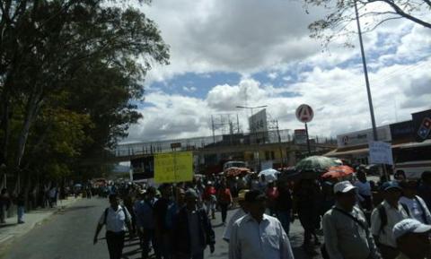 Oaxaca.- Unos 250 maestros jubilados de la CNTE de Oaxaca marchan del IEEPO al Zócalo en exigencia del pago de una prima de antigüedad.
