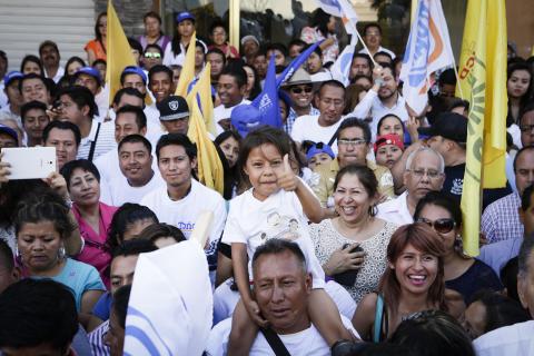 Al final, una lluvia de papel picado, amarillo y azul, rubricó las palabras del candidato a la gubernatura por la coalición CREO, y los vivas volvieron a multiplicarse como los miles y miles de oaxaqueños y oaxaqueñas que este domingo acompañaron al quien están seguros será su próximo gobernador.