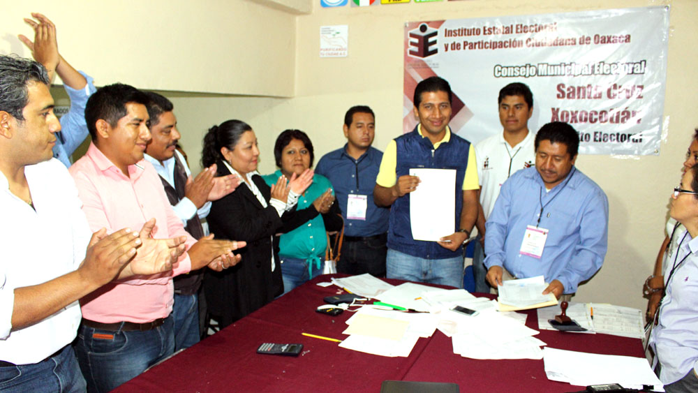 El Consejo Municipal Electoral de Santa Cruz Xoxocotlán entregó este viernes la constancia de mayoría al candidato ganador a la alcaldía de este municipio, Alejandro López Jarquín, documento que lo acredita como presidente municipal electo para el período 2017-2018 y que entrará en funciones el próximo primero de enero.