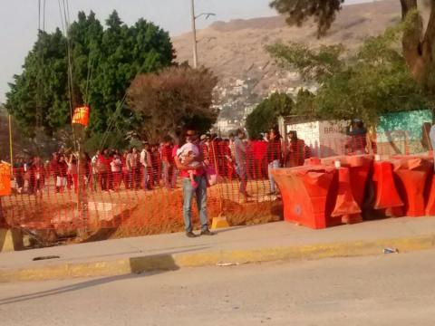 Oaxaca, Oax.- Para exigir a la empresa que construye el polémico Citybus, transportistas del frente 14 de Junio de la Confederación Nacional de la Productividad (CNP), pararon los trabajos del Citybus que se realizan en el Parque del Amor.