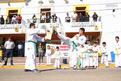 Enseguida, la Banda de Guerra del CBTis 259 de esta población, encabezó el desfile deportivo en donde también participaron niños y jóvenes de la Escuela de Gimnasia Rítmica “Hello” y el Instituto Multidisciplinario de Alto Rendimiento “Sun Tzu Do”.