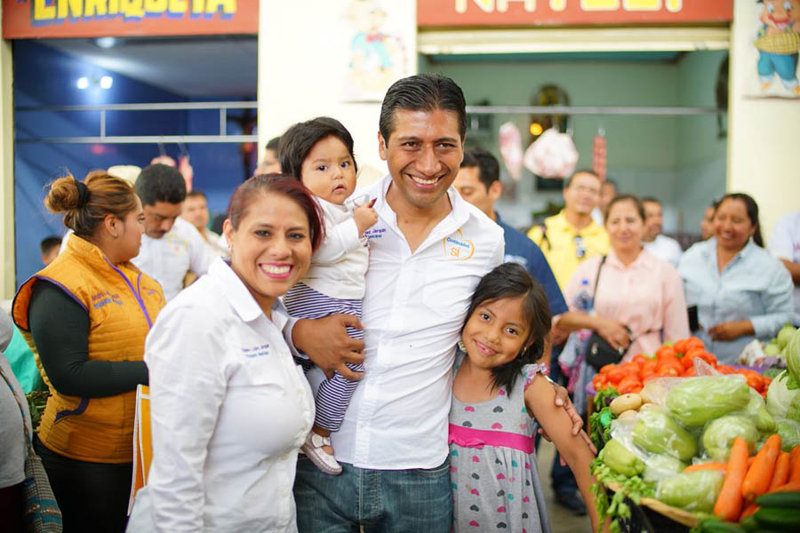 ~~Santa Cruz Xoxocotlán, Oax.-  Al grito de porras y aplausos por parte de locatarias del Mercado de Santa Elena, el candidato a la presidencia de Santa Cruz Xoxocotlán por la coalición Por México al Frente, Alejandro López Jarquín visitó a comerciantes locales para reiterar su compromiso de impulsar el desarrollo económico.