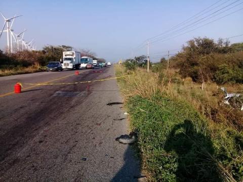 Santo Domingo Ingenio, Oaxaca. Los cuerpos de una mujer y un hombre quedaron desechos sobre la carretera federal 190 tramo Santo Domingo Ingenio - La Venta, casi a la entrada al Parque Eólico 5 Palmas, lo anterior tras sufrir un accidente automovilístico.