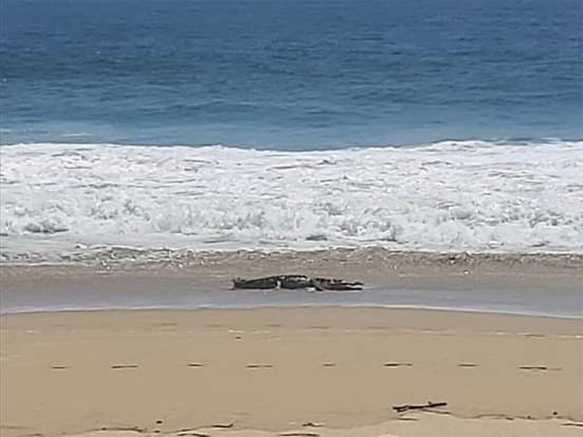 Las autoridades municipales pidieron a la población, prestadores de servicios y visitantes a extremar precauciones en la franja de arena y al ingresar al mar, así como reportar cualquier avistamiento del lagarto.