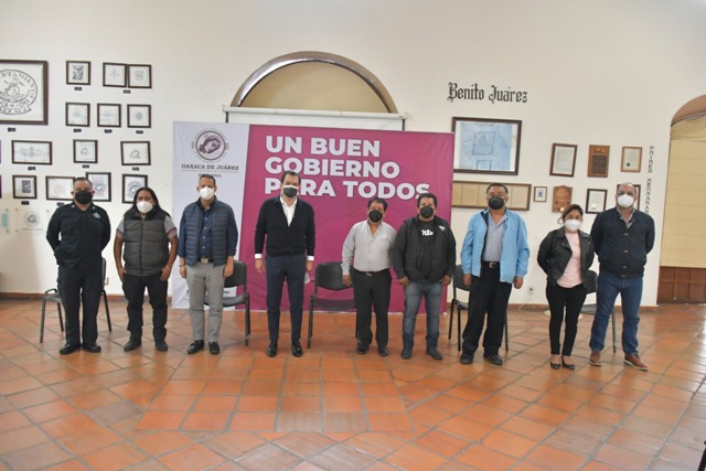 Oaxaca de Juárez, Oax.- El Presidente Municipal Oswaldo García Jarquín sostuvo hoy una reunión de trabajo con dirigentes y representantes de comerciantes del Mercado de Abasto, a quienes les reiteró la importancia de observar y cumplir las disposiciones aprobadas por el Cabildo de Oaxaca de Juárez para contener la pandemia de COVID-19 en la ciudad capital; asimismo, les reconoció su voluntad para anteponer la salud comunitaria al no instalar puestos de temporada en la calle de Mercaderes.