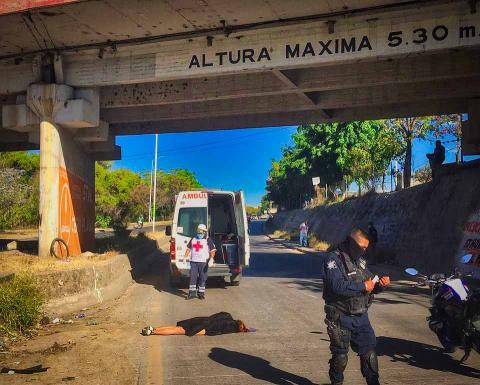 Testigos indicaron que la mujer caminaba en el puente Valerio Trujano, y de repente se aventó hacia el vacío, cayendo de cabeza contra el suelo.