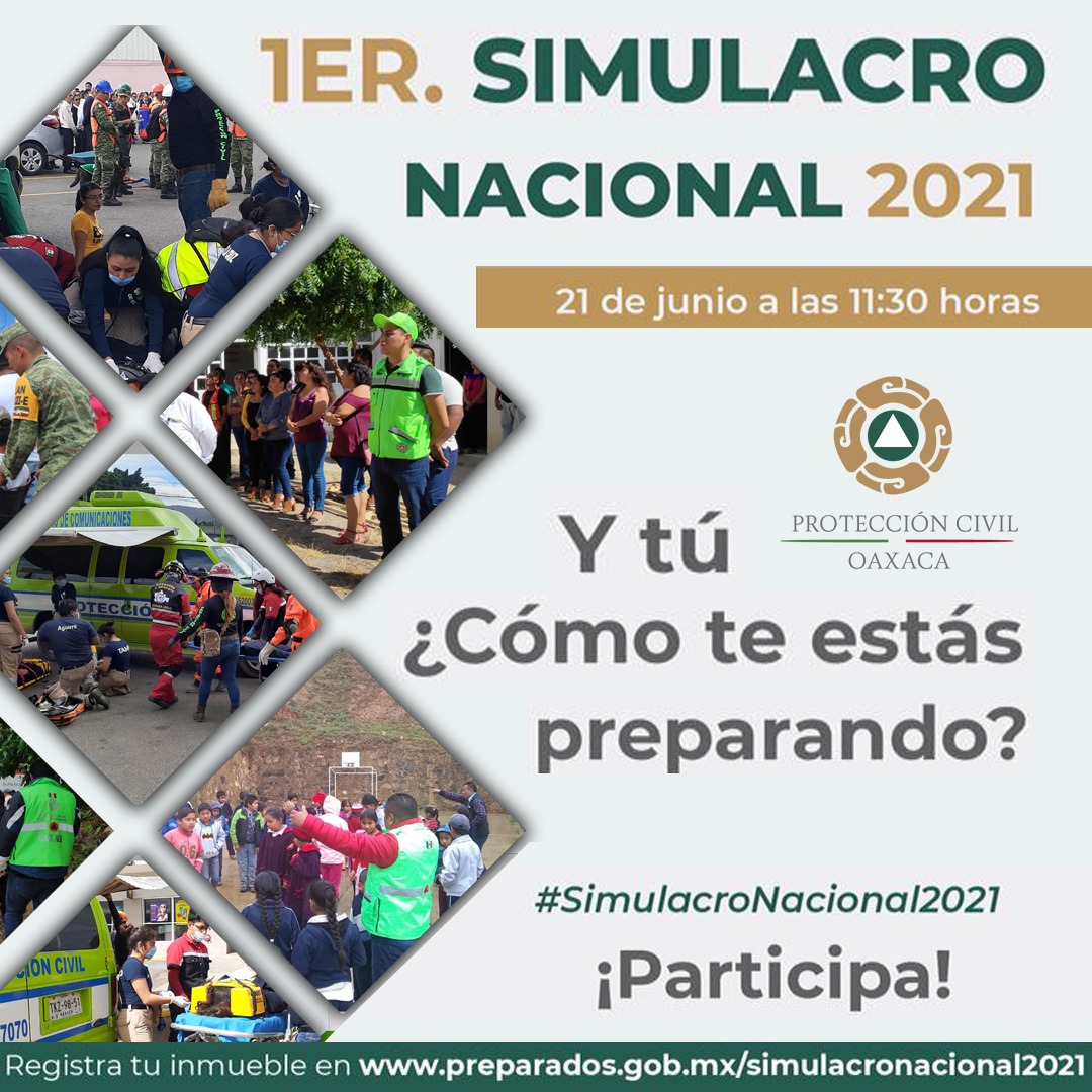Oaxaca de Juárez, Oaxaca. El Gobierno del Estado y la Coordinación Estatal de Protección Civil de Oaxaca (CEPCO) informan sobre la realización del Primer Simulacro Nacional 2021, evento de sismo, que se llevará a cabo este lunes 21 de junio, a las 11:30 horas.