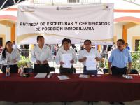 Encabeza edil entrega de escrituras y certificados en Pinotepa e-consultaViernes, Marzo 14, 2014 - 15:59Entrega 363 escrituras y certificados de posesión inmobiliaria, con el propósito de ofrecer seguridad y certeza jurídica a su patrimonio.Leer más